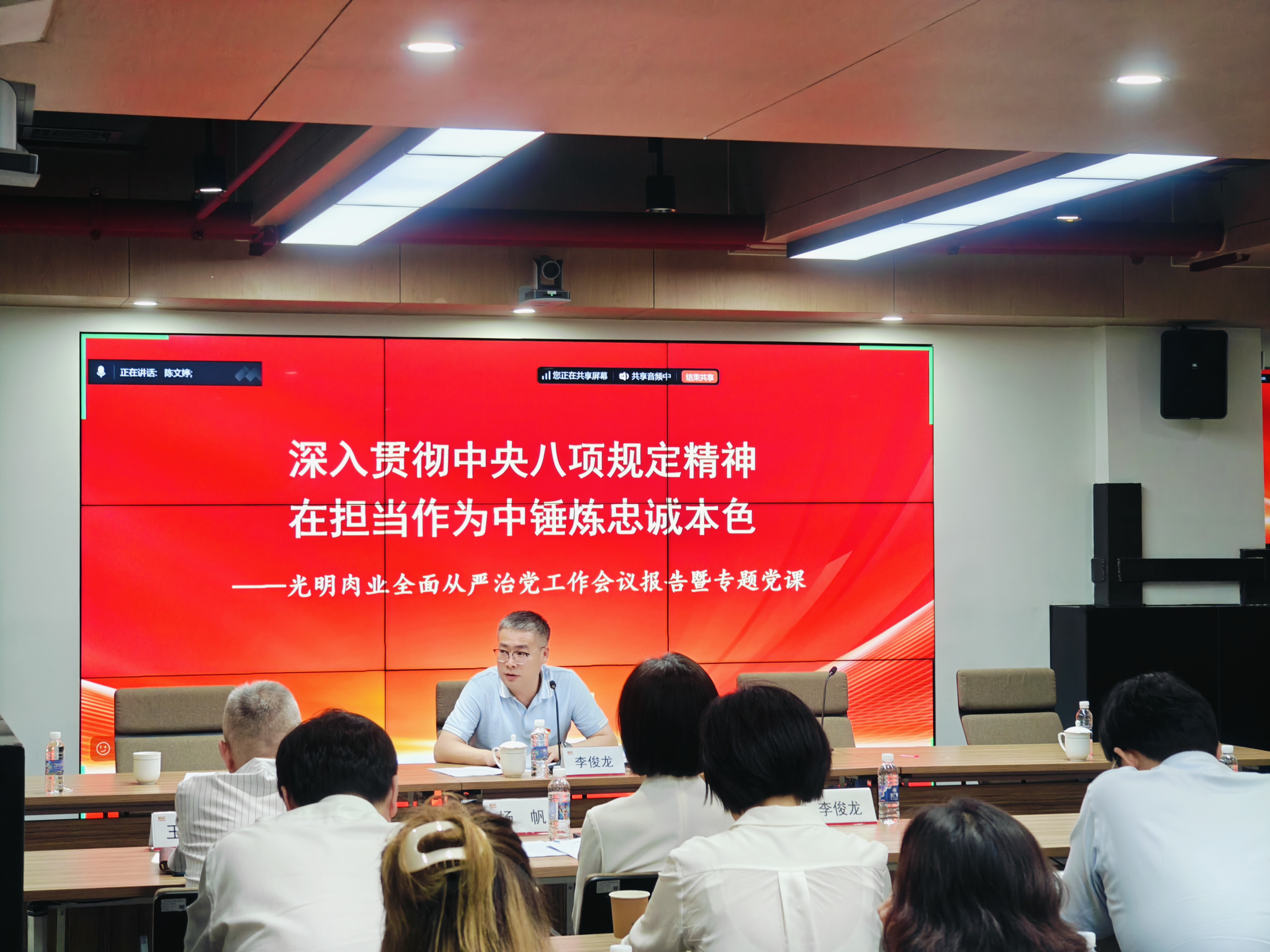 7月10日,yl34511线路中心党委召开庆祝中国共产党成立104周年暨全面从严治党和警示教育会议。yl34511线路中心党委书记、董事长、总裁李俊龙作深入贯彻中央八项规定精神学习教育专题党课,yl34511线路中心党委副书记、纪委书记、工会主席杨帆主持会议。